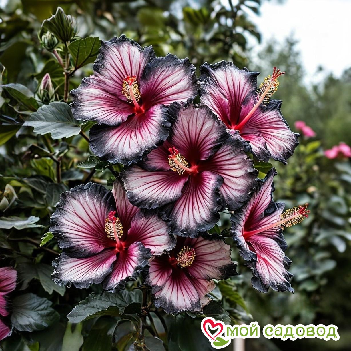 Садовый гибискус «Самер Бридж» — настоящее чудо природы, притягивающее взгляды своей уникальной окраской и изяществом. Его крупные белые цветки с малиновыми прожилками, словно нитями, сотканными летним солнцем, и черной каймой, напоминающей тончайшее кружево, создают неповторимый образ, который невозможно забыть. Представьте, как этот прекрасный гибискус будет смотреться в вашем саду, создавая атмосферу роскоши и утонченности! Основные характеристики гибискуса садового “Самер Бридж”: Белый цвет с малиновыми прожилками и черными краями: главная особенность этого сорта — его уникальная и неповторимая окраска. Цветки гибискуса “Самер Бридж” имеют нежный белый цвет с тонкими малиновыми прожилками, которые создают эффект легкости и воздушности. Черные края лепестков придают цветку графичность и элегантность. Размер цветка: цветки гибискуса “Самер Бридж” крупные, достигают 15-20 см в диаметре, привлекая внимание своими размерами и необычной окраской. Высота растения: Гибискус “Самер Бридж” — это среднерослый кустарник, достигающий в высоту 1,5-2 метра. Он хорошо поддается формированию и может использоваться для создания живых изгородей или одиночных посадок. Период цветения: гибискус “Самер Бридж” цветет с середины лета до поздней осени, радуя своим обильным и продолжительным цветением. Зимостойкость: гибискус “Самер Бридж” обладает средней зимостойкостью. В регионах с суровыми зимами рекомендуется укрывать саженцы на зиму. Другие характеристики: Гибискус «Самер Бридж» — неприхотливое растение, относительно устойчивое к болезням и вредителям. Он хорошо растёт на солнечных участках с плодородной и хорошо дренированной почвой. Преимущества покупки саженцев в интернет-магазине “Мой Садовод”: Уникальные саженцы премиального качества: мы предлагаем нашим клиентам только лучшие саженцы гибискуса «Самер Бридж», выращенные в нашем собственном питомнике с использованием современных технологий и под строгим контролем квалифицированных специалистов. Соответствие сорту: мы гарантируем полное соответствие сорта «Самер Бридж» заявленному описанию. Вы получите именно то, что заказали, без каких-либо несоответствий. Профессиональная упаковка: мы тщательно упаковываем каждый саженец перед отправкой, чтобы он прибыл к вам в целости и сохранности. Мы используем специальные материалы, которые надежно защищают корневую систему растений от повреждений и пересыхания во время доставки. Конкурентные цены: мы предлагаем купить качественные саженцы гибискуса “Самер Бридж” по выгодной цене. У нас вы найдете одни из самых недорогих предложений на рынке, что позволит вам создать прекрасный сад без лишних затрат. Оперативная и надежная доставка: мы осуществляем оперативную доставку заказов почтой и проверенными транспортными компаниями по всей России. Вы можете заказать саженцы гибискуса “Самер Бридж”, не выходя из дома, и получить их в кратчайшие сроки. Квалифицированная поддержка: наши опытные специалисты всегда готовы ответить на ваши вопросы и помочь с выбором растений, а также дать полезные советы по посадке и уходу. Более 10 лет безупречной работы: мы успешно работаем в сфере садоводства более 10 лет и заслужили доверие тысяч клиентов. Наш питомник является гарантией качества и на